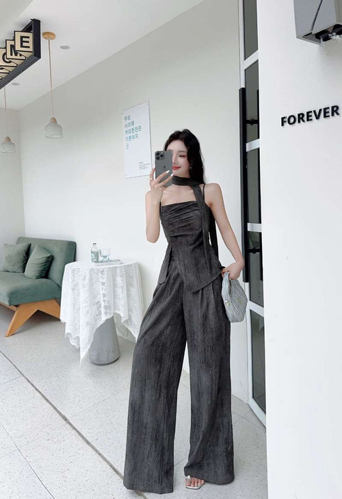 Black & Grey Satin Co-ord Set – Dimorra Fashion