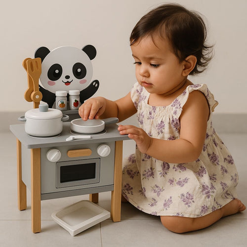 Play House Simulation Wooden Kitchenware - Adorable Panda Stove for Little Chefs!