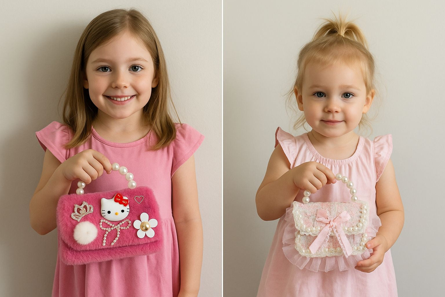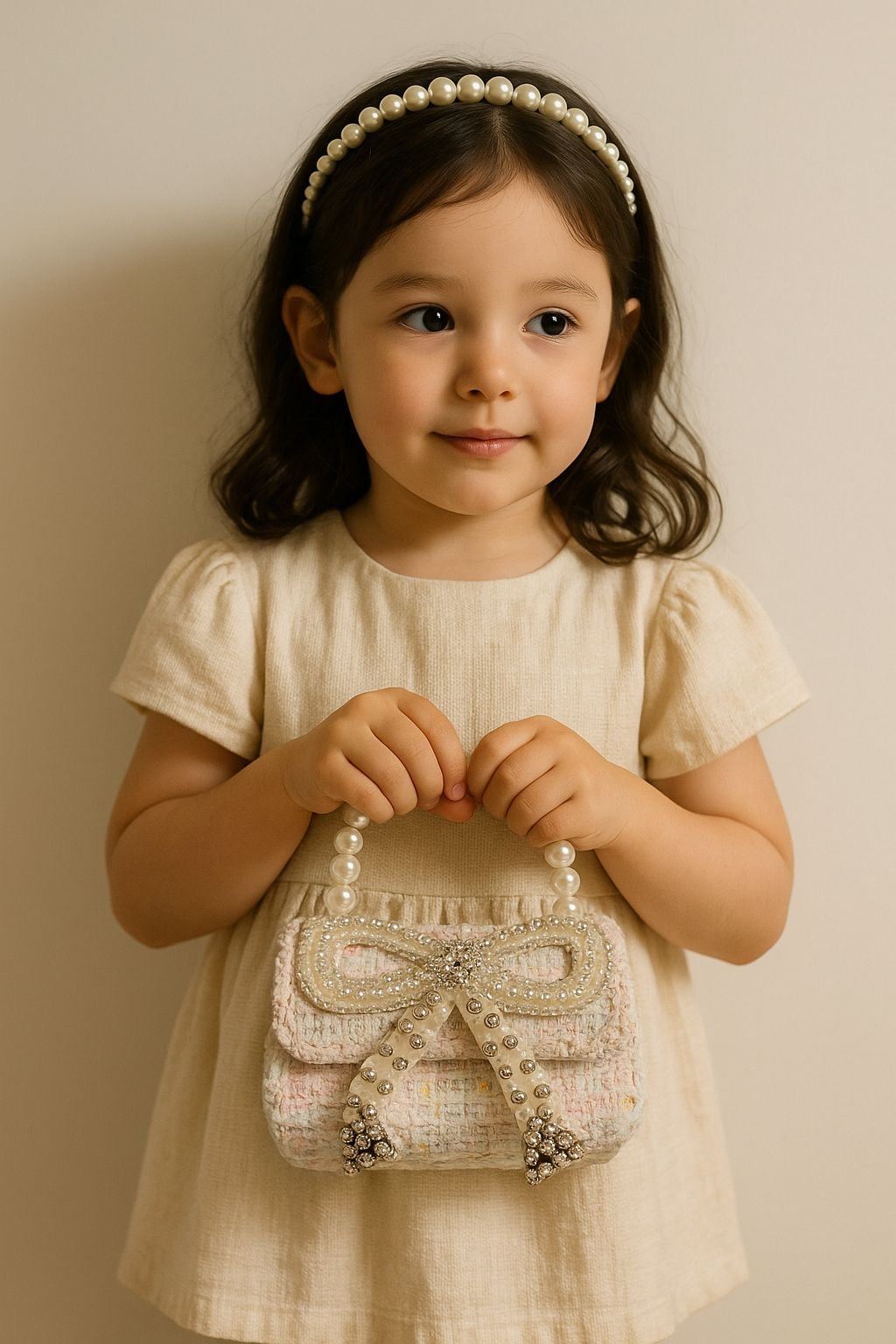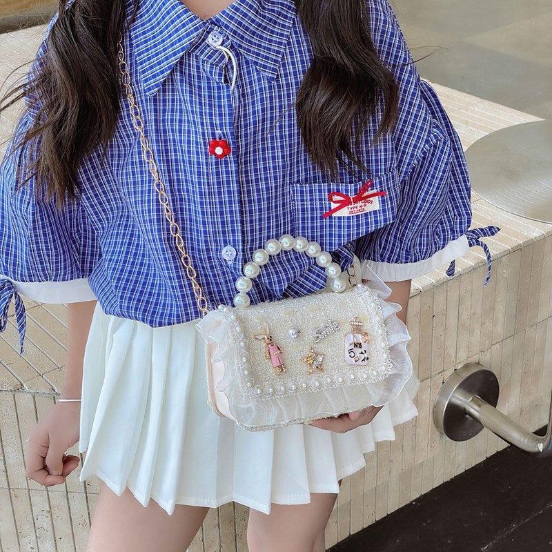 Dreaming of a little sparkle? ✨ Introducing our adorable Princess Pearl Handheld Crossbody Bags, perfect for your little one's adventures!